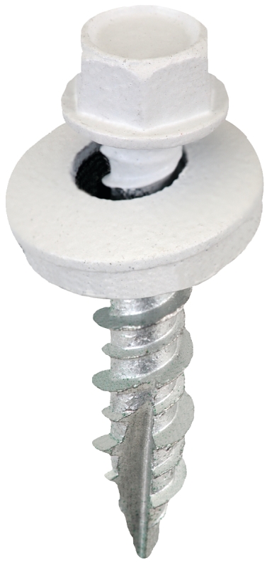 #9-15 Metal-to-wood screws are sealing self-piercing tapping screws made from heat treated Steel, case hardened for roofing and siding applications. A 1/4 in across flats high hat hex washer head with assembled EPDM washer offers easy driving and conforms to the metal surface for a secure and long-lasting seal. The twin lead type 17 point and hi-lo threads offer faster drive time and greater resistance to pullout. All screws are 1000 hr salt spray test dacro-coated. Colored screws are powder-coated over the dacro base coating. All Acorn International screws are packed 250 pieces in a heavy-duty tear-off resealable bag, UPC-coded and retail ready. All bag and carton labels are trilingual. Cartons are heavy-duty cardboard of uniform size and distinctive yellow color for better retail identity.Item Specifications