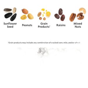 • Ingredients: Peanuts Black Oil Sunflower Seed Cracked Corn Striped Sunflower Seed Raisins Mixed Feed Nuts Gelatin