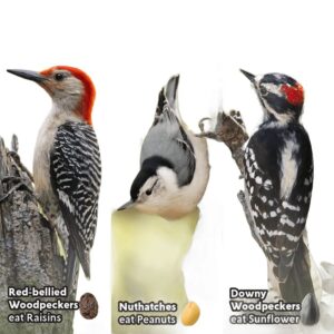 Created with woodpecker health in mind, this easy to use bird seed treat packs a powerful punch of protein rich nuts and seeds paired with high-energy raisins.