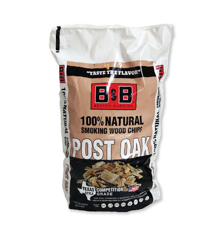 B & B Charcoal Smoking Chips, Net Content: 180 cu-in, Wood, Flavor: Post Oak, Suitable for: Beef, Dairy, Lamb, Pork, Poultry, Seafood, Vegetables, Wild GameItem Specifications