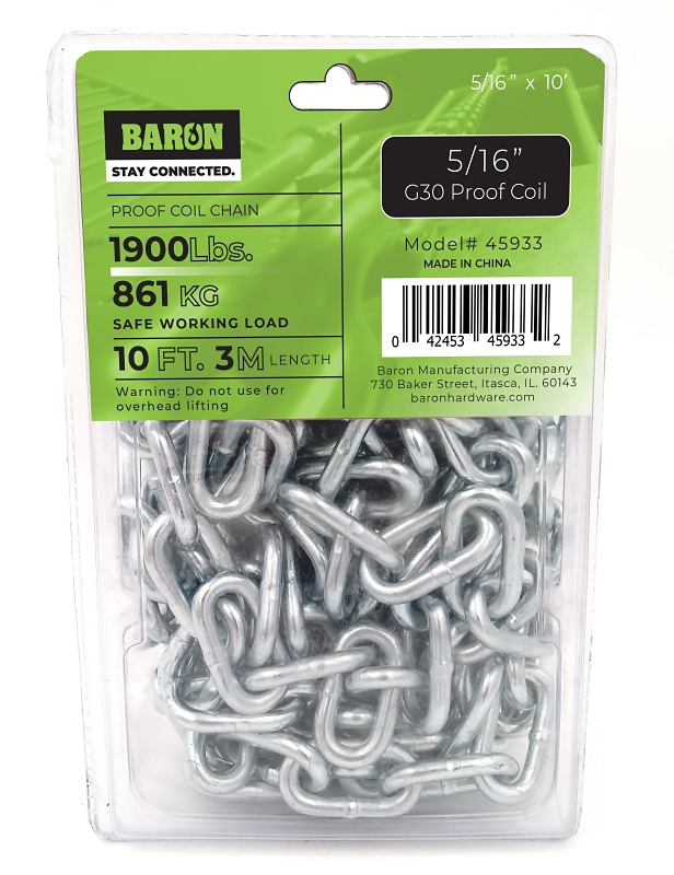 Baron 45933 Proof Coil Chain, 5/16 in, Zinc
