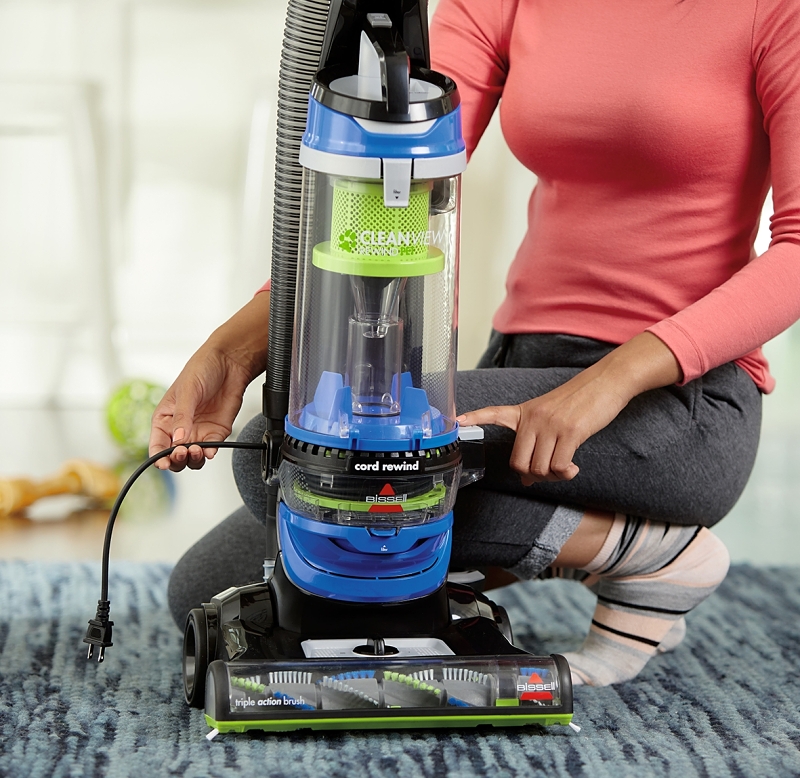 Bissell® CleanView® plus rewind vacuum cleaner tackles multi-surface cleaning with ease. TripleAction Brush Roll⢠that loosens, lifts and removes embedded dirt and hair on multiple surfaces. Scatter-free technology captures messes on hard floors with less debris scatter. The multi-cyclonic suction system with extended filter performance captures and keeps dirt in the bin, where it belongs. In addition, its multi-level filtration with a washable filter helps trap dust and particles with easy maintenance. When it comes to cleaning convenience, Bissell® CleanView® plus rewind vacuum delivers a 25 ft power cord with automatic cord rewind, so you never have to wrap a cord again. Once you have finished vacuuming, its bottom, Easy Empty⢠dirt bin makes for quick, mess-free emptying. The TurboBrush® Tool is a mini rotating brush roll that works to agitate dirt, debris and hair and is perforce for cleaning stairs, upholstery, auto interiors and more.Item Specifications