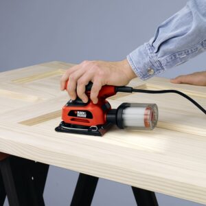 This 1/4 sheet finishing sander with paddle trigger actuation is comfortable, easy-to-use and ideal for wood, metal and plastic. It sands flush on three sides to get into tight spaces and it features built-in dust collection for cleaner work areas.Item Specifications