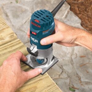 The Bosch PR20EVS Colt electronic variable-speed palm router combines power, precision and versatility in a small-sized tool. It has a 1 hp, 5.6 A motor that spins at a variable speed of 16,000 to 35,000 rpm. The variable speed dial is conveniently mounted on top of the tool body. The router features constant response circuitry, which maintains a consistent speed by detecting heavy loads and increasing power to maintain the selected rpm. It features soft-start circuitry, which reduces startup torque. Additionally, depth adjustment is simple, just align and lower the motor and then lock the router in position with the clamping level. Micro-fine adjustments are equally effortless, thanks to the wheel on the back of the routers base. It accepts standard 1/4 in bits for flexibility, with an impressive max cutter diameter of 1-5/16 in. The motor housing has a palm-shaped, rubber over-molded grip that allows for comfortable operation. And the included rugged aluminum fixed base is durable, solid and precise.Item Specifications