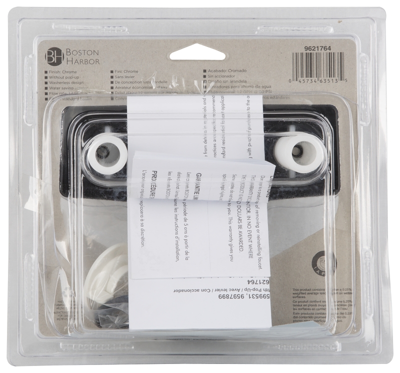 4 in centers. Washerless design, plastic waterways, water saving aerator, 1/2-14 NPSM inlet. Fits all standard basins. IAMPO & NSF certified, Carded.