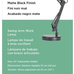 Boston Harbor Swing Arm Work Lamp, 120 V, Wattage Rating: 60 W, Number of Lamps: 1, Base Type: Medium, Shade Material: Metal, Shade Color: Black, Lamp Type: A19 or CFL, Metal, Black, Base Diameter: 6-5/8 in, 26 in H, Cord Length: 72 in, Cord Type: 2-Prong Polarized PlugItem Specifications