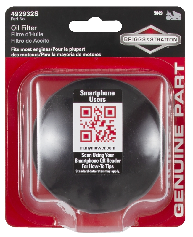 Display pack of 1 (492932S) oil filter. This genuine oil filter helps to remove harmful contaminants from engine oil. Used on select Intek and Vanguard OHV pressure-lubricated engines, this OEM part ensures proper fit and performance to maintain the life of your Briggs & Stratton engine.