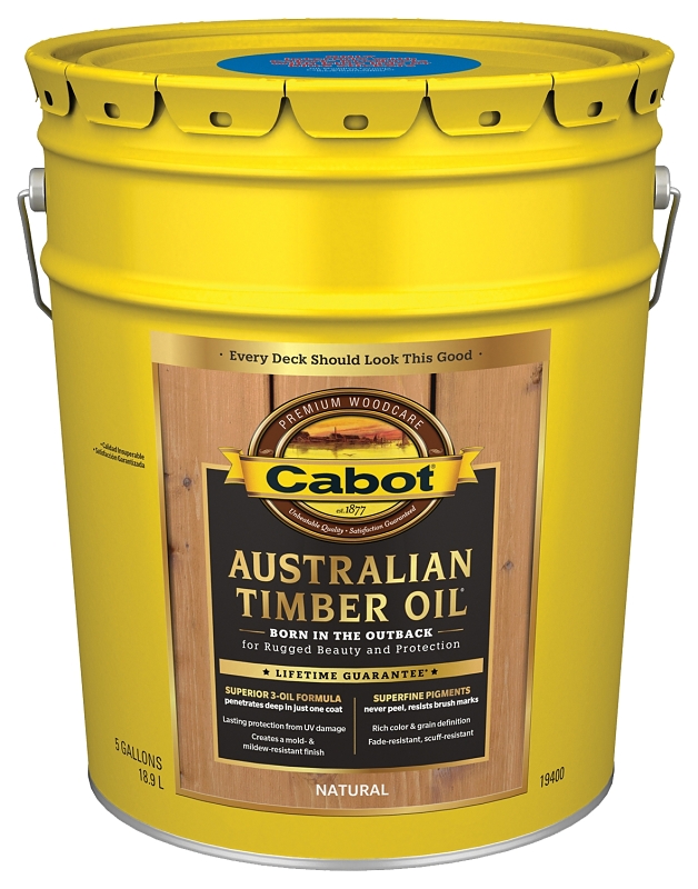 Cabot® Australian Timber Oil® for decks, siding, railings and outdoor furniture is a unique blend of oils originally formulated to protect dense tallow wood, cambara and merbau from the extreme Australian exposures. Australian Timber Oil® penetrates deep into the dense, resin-rich woods to accentuate natural wood depth and patina. Containing a precise blend of superb-grade linseed oil for maximum penetration, long-oil alkyds for durability and pure South American tung oil for color depth and water repellency, Australian Timber Oil® delivers three-way oil protection and a beautiful hardwood stain. In addition, complex translucent iron oxide pigments are added to ensure a lasting UV-absorbing surface rich with color and dimension.Item Specifications