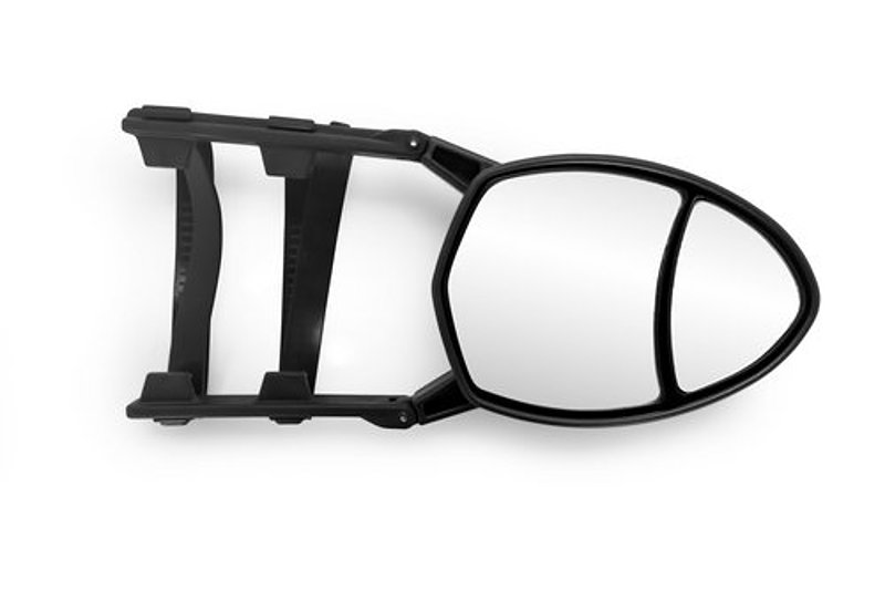 The Camco clip-on tow mirror gives you more visibility when towing, making driving while towing safer and giving you peace of mind. The clip-on mirror features 360 deg ball and socket adjustment and an aerodynamic design that reduces vibrations. Installation is easy- there are no tools required. The adjustable rubber straps provide a universal fit. Clip-on mirror measures 5 x 7-1/2 in and fits driver or passenger side mirror.