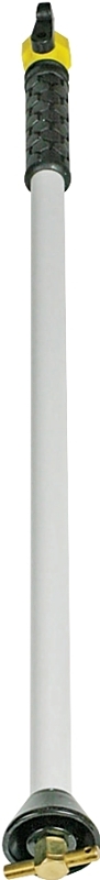 Patented holding tank rinsers with shut-off valves dislodge and flush stubborn waste deposits and odor-causing particles left after holding tank is emptied. Powerful rotary cleaning action reaches corners and walls of tank. One-quarter turn shut-off valve at your fingertips. All-brass moving parts. Flexible Swivel Stik⢠has a flexible 55-1/2 in reach for basement holding tanks.