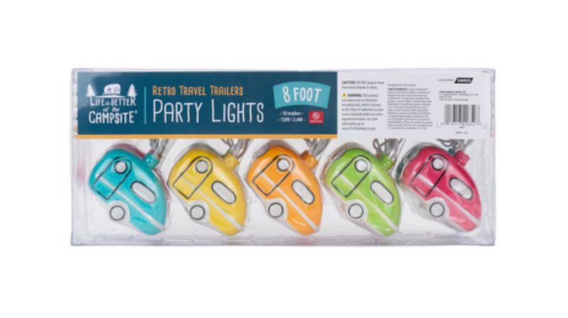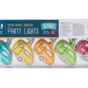 Camco's life is better at the campsite retro travel trailer LED party lights provide a festive atmosphere that is ideal for RV enthusiasts. Features an 8 ft strand with (10) retro travel trailer LED lights and an end connector for hooking strands together. The 120 V, 2.4 W party lights are UL certified for indoor and outdoor use.Item Specifications