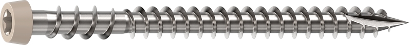 Camo Deck Screw, Corrosion-Resistant, #10 Thread, 2-1/2 in Length, Reverse Upper Thread, Trim Head, Star Drive, Sharp, Type-17 Point, 316 Stainless Steel, Painted, Package Quantity: 350 PK, 1-3/4 in Thread Length, T20 Drive, Marine Grade, Sand, Applicable Materials: Capped Composite, Composite, PVC, Wood, Includes: T20 Power BitItem Specifications