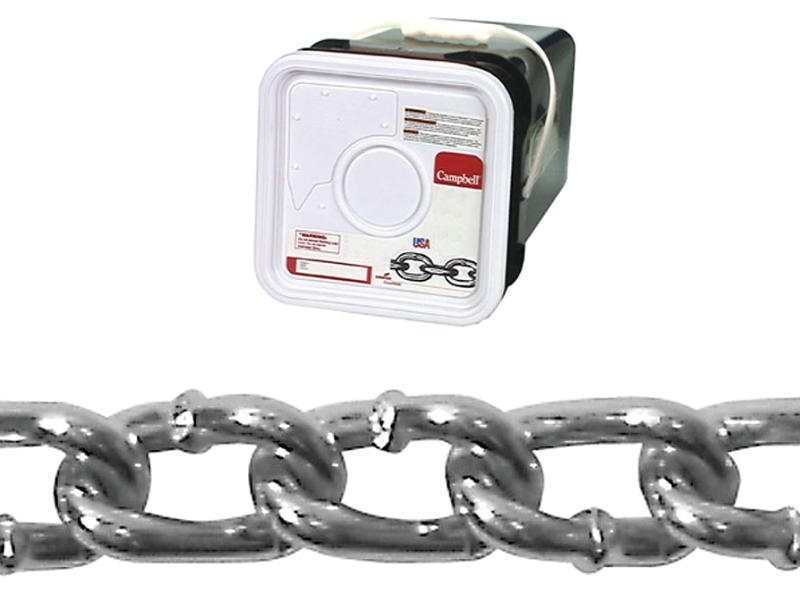 Campbell 0322026 Twist Link Coil Chain, #2/0, 175 ft L, 520 lb Working Load, Steel, Zinc