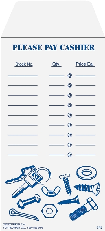 Our 3-1/2 in x 6-1/2 in non-personalized small parts envelope is the solution to packing and pricing the smallest of items. Ideal for keys, screws, bolts, chains and more.Item Specifications