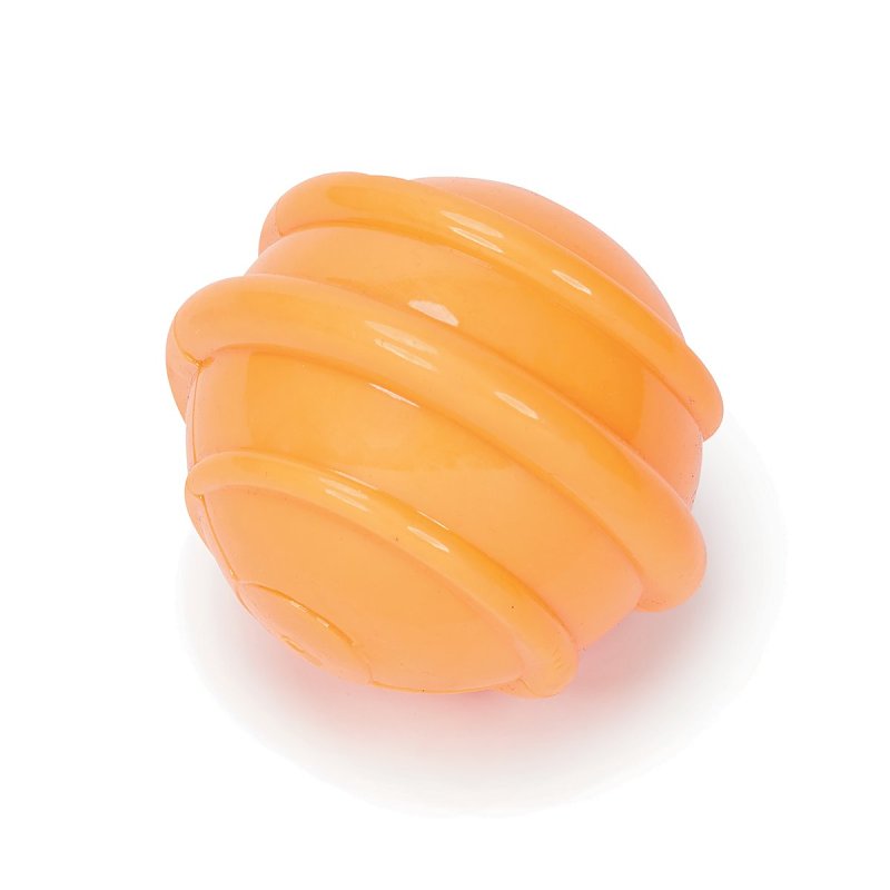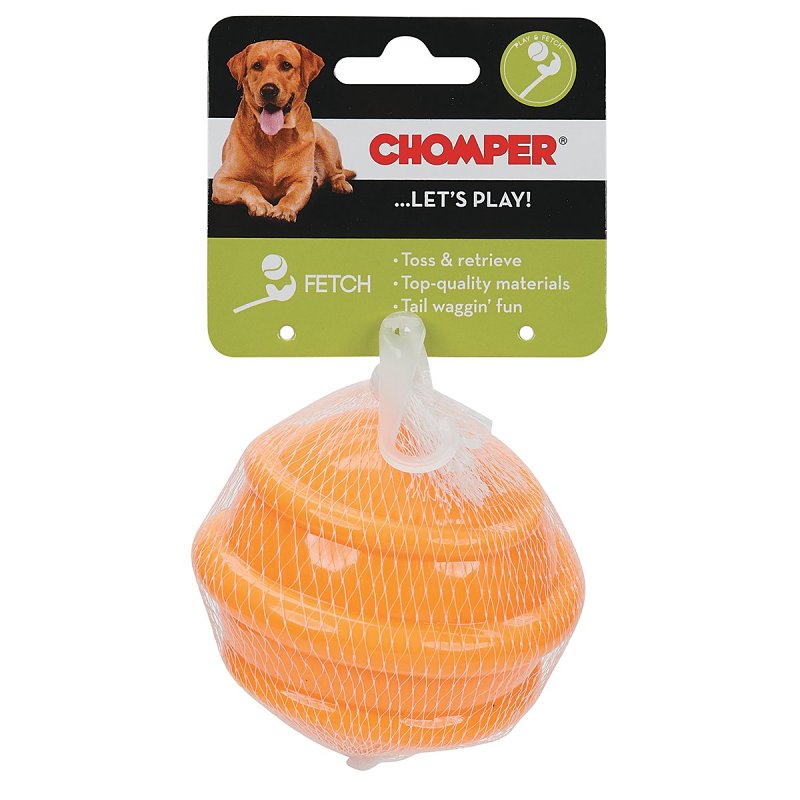 Super-fun and super-durable 4 in Chomper® TPR squeaky spiral ball is quality made to stand up to even the roughest play. Ideal for games of toss and fetch, includes a squeaker to excite and entice dogs to play. Durable TPR rubber for durability and easy clean care.