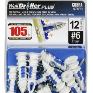 The WallDriller PLUS®, 2X stronger than our 1st generation, is designed with three expandable legs that grip tightly behind the drywall for maximum holding power. Its fine-centered point helps guide the anchor into the wall with flawless precision. A sharp profile thread cuts deeply into the hole without damaging the drywall, ensuring excellent holding power and stability. The sharp cutting edge reduces the force required to cut the material, making it a self-drilling anchor without pre-drilling. Available sizes - #6 (3.5 mm), #8 (4 mm), #10 (5 mm) and #12 (6 mm).Item Specifications