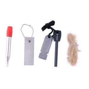 IncludesBellow Flint Rod Flint Scraper Tool Jute Tinder Magnesium Bar 4.33 in x 2.76 in x 0.9 in Tin Storage Can