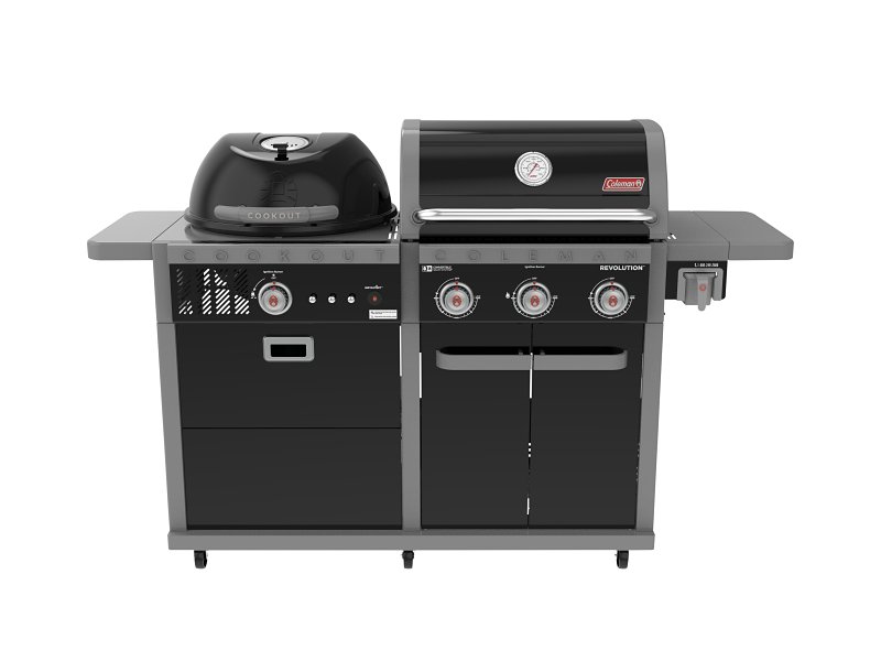 Home > Outdoor Living and Patio > Outdoor Cooking > Grills and Smokers > Gas Charcoal Combo Units > Coleman RV-601BBQ Revolution Dual Fuel Grill, 45,000 Btu, 1077 sq-in Primary Cooking Surface