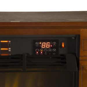 Instant warmth and charm is what this Comfort Glow mobile electric fireplace provides. This fireplaces ambient tri-color flame and vintage oak cabinet will fit into any rooms decor. Built in casters allow for easy mobility. The included full function remote allows convenient control of the built-in thermostat and two power selections. This unit plugs into any polarized 120 V outlet for instant heat.Item Specifications