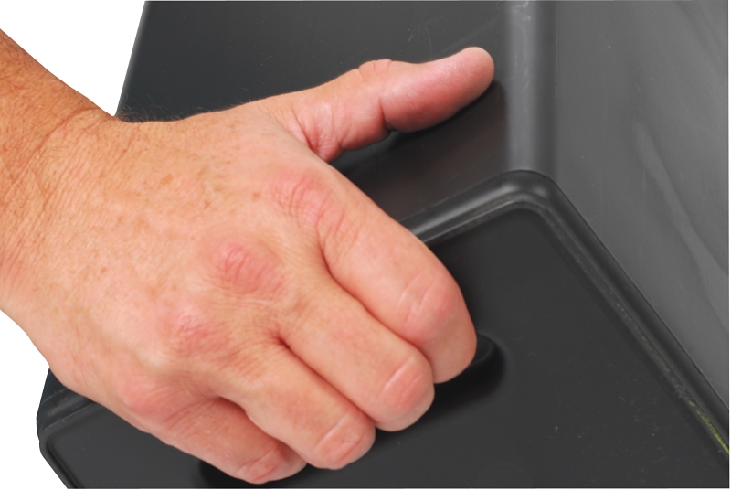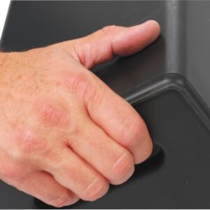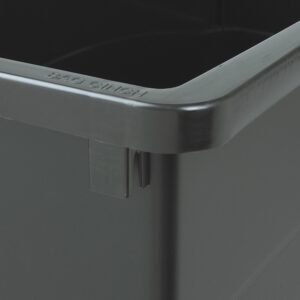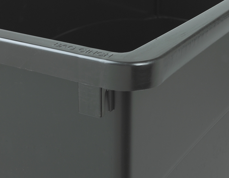 Continental Wall Huggers have a sleek and attractive design that holds either 16 or 23 gal of waste, but protrude less than one foot from the wall, the smooth, seamless design provides prolonged life and promotes easy cleaning, the line includes a version with built-in handles which provide ease of transport and a secure area to grasp when lifting and dumping, the addition of a Wall Hugger drop shot lid helps to conceal waste while providing an inviting, enlarged opening for waste disposal. The 8-1/4 in x 16-3/4 in opening is the largest available in a Wall Hugger style receptacle.Item Specifications