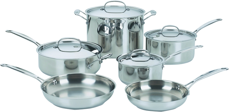 Cuisinart Chef’s Classic 77-10 Cookware Set, Stainless Steel, Polished Mirror, 10-Piece
