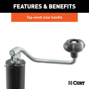 In our goal of being your excellent source for all things towing, the Curt line of trailer jacks is designed with care and manufactured with pride. Curt jacks are made with quality to promote the life and function of your trailer, and they come in several different styles to accommodate your needs, whether you are a frequenter of the boat landing, the campground, the racetrack or the field. Curt swivel jacks get their name from the pull-pin swivel feature that allows the jack to pivot on its mounting bracket and swing up and out of the way for travel. Our swivel trailer jacks are broken into two categories: pipe mount and bracket mount. This Curt pipe mount swivel jack features a support capacity of 5000 lb, a lift capacity of 3000 lb and a travel of 15 in. With a jack foot plate welded on the bottom, this type of jack also provides added stability for your trailer on rough terrain. It comes with a top-wind handle and includes a weldable pipe with a 5/8 in hole for secure mounting. It does not matter what kind of trailer you tow - a boat trailer, utility trailer, livestock hauler or recreational vehicle trailer - if you have a receiver-style trailer, you will want a jack that complements its function. For a trailer jack that will not steer you wrong, Curt has the answer.Item Specifications