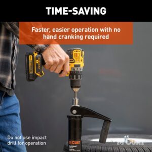 Can't decide between an automatic, power tongue jack or a manual jack, Why not choose both, The Quick Drop® tongue jack by Curt; gives you the excellent of both worlds. Uniquely designed with a 3/4 in hex nut at the top of the crank, you can conveniently use a power drill to raise and lower you're a frame trailer without the hassle and strain of manually cranking your jack. This is a great option when you're camping or parking your 5th wheel RV, travel trailer or cargo/utility trailer away from a power source or when you could just use a little break from operating the manual crank. But, not to worry, if your drill kicks the dust or is out of battery, you can still use the top-wind, ribbed crank handle to get the job done, so you're never stranded on the road without being able to lift or lower your a frame trailer. Now that's what we like to call a camping win, win. Complete with a 14 in vertical range, 2000 lb. load capacity, durable, powder-coated finish and footpad, this power or manual tongue jack is the economical, practical solution for your RV.