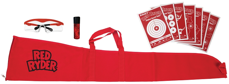 The Daisy Red Ryder starter kit comes with everything you need except the Red Ryder BB gun itself - you get a red Ryder Gun Sleeve with an image of the man himself, BBs in a special screw-top tin, shooting glasses and 25 cool Red Ryder paper targets. Just add a Red Ryder and you've got everything you need to become a sharp shooter.Item Specifications