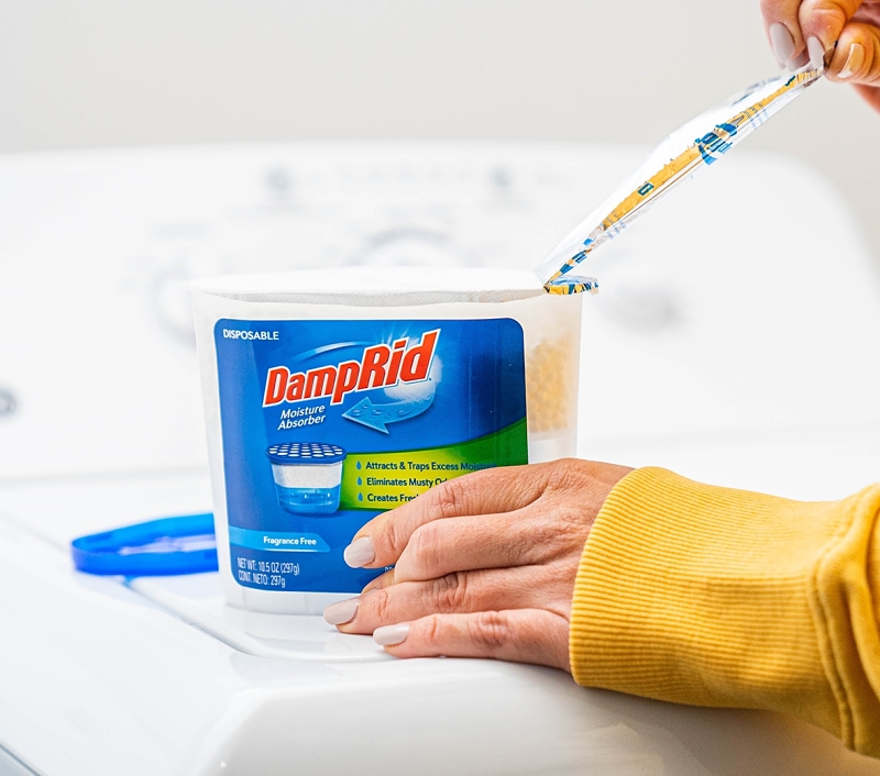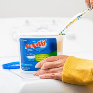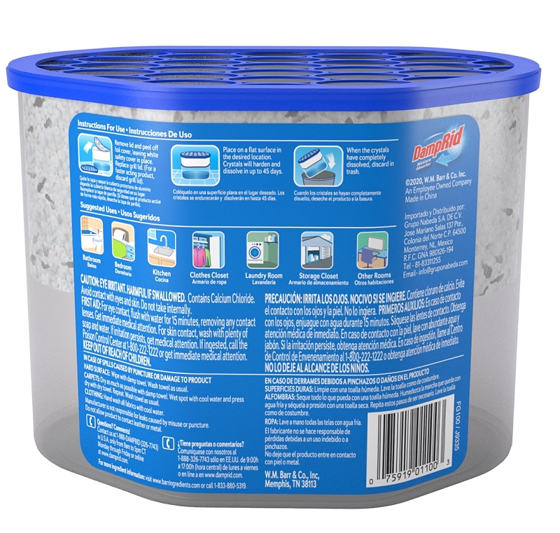 DampRid Fragrance-Free Disposable Moisture Absorber, 10.5 oz Net Content, Tub Container, Solid Form, Off-White/White, Compositions: Calcium Chloride, Sodium Chloride, Potassium Chloride, 2.15 Specific Gravity, Melting Point: 369 to 1420 deg F, 350 to 3500 deg F Boiling Point, 15.4 lb/gal DensityItem Specifications