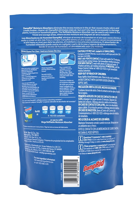 DampRid Moisture Absorber, 42 oz Net Content, Pellets Form, Off-White/White, Compositions: Calcium Chloride, Sodium Chloride, Potassium Chloride, 2.15 Specific Gravity, 15.4 lb/gal DensityItem Specifications