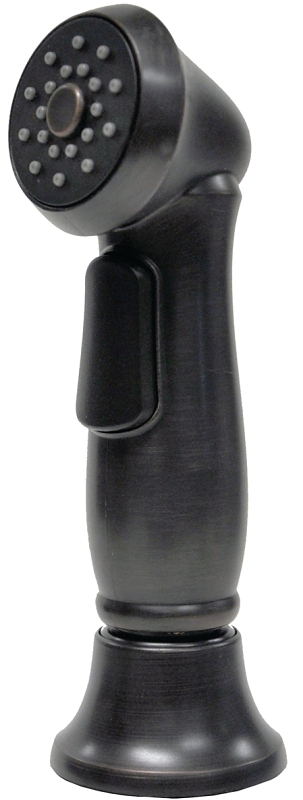 Update your current side spray with this Premium updated look in oil rubbed bronze. The Danco side spray has a versatile design and fits various faucet brands. It provides a high pressure directional power spray with a front cushioned thumb-applied trigger action. It offers a patented C-clip for a quick connection. The plastic construction provides durability and reliable performance.Item Specifications