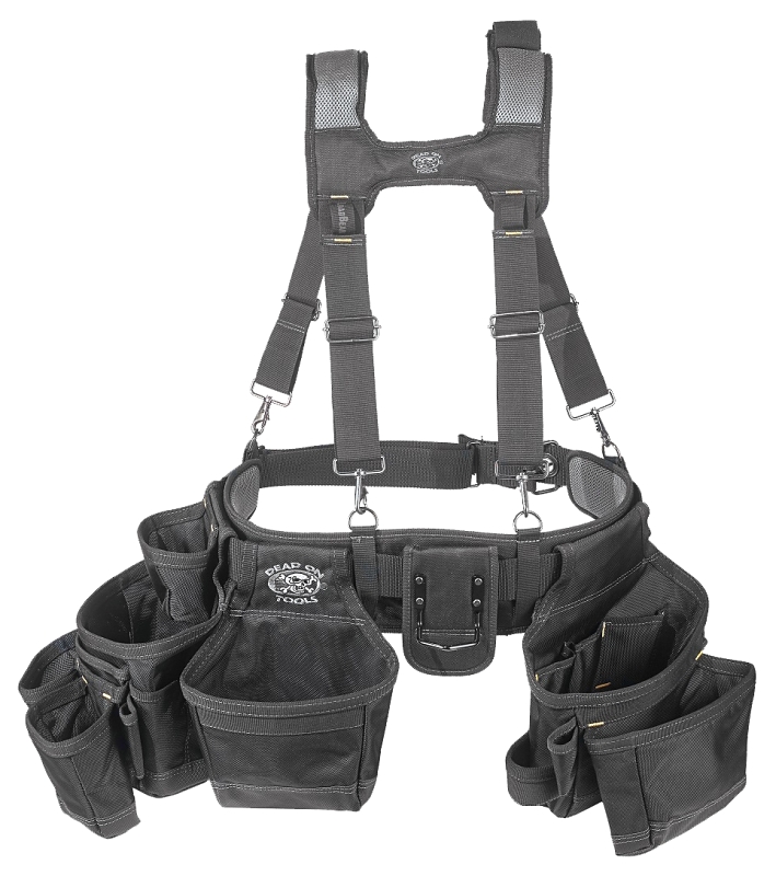 Made of 1680 denier heavy-weight poly fabric. "LoadBear" stretch suspension, infinity belt fits up to 52 in. Single body construction (no joints to fail). Barrel bottom pouches for extra capacity.Item Specifications