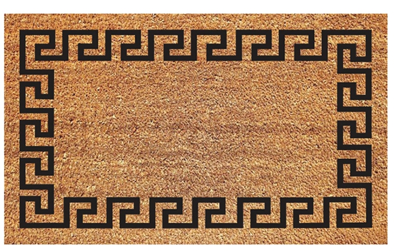 DeCoir Non-Slip Door Mat, Rectangular Shape, Greek Key Pattern, 18 in Length, 30 in Width, Vinyl Backing, Black/Tan, Indoor Indoor/Outdoor, Resists: Moisture, Mildew, RotItem Specifications