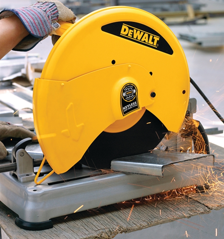 The D28715 14 in Chop Saw with QUIK-CHANGE™ keyless blade change system is powered by a 15 A motor for high-performance without overheating. Features two tool-free systems Quik-Change™ blade change system and Quick-Fence™ 45 deg adjustable fence reduces downtime with fast and accurate cuts.