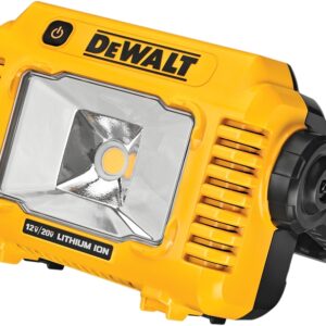 DEWALT Cordless Compact Task Light, Battery Type: Lithium-Ion, Battery Voltage: 12/20 V, Battery Capacity: 4 Ah, Lamp Type: LED, Lumens: 2000 Lumens, IP Rating: IP54, Tripod Mounting, Plastic, Black/Yellow, Dimensions: 9.6 in L x 4.8 in W x 7.4 in HItem Specifications