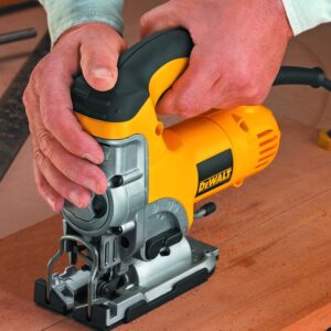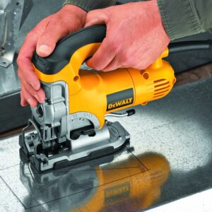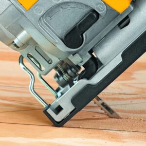 The DW331K jig saw kit has a powerful 6.5 A motor which delivers the performance needed for even the most demanding materials. With speeds between 500 to 3100 spm and four-position orbital action for faster, more aggressive cuts, this saw can hold up to a variety of applications. Also features an all-metal keyless shoe bevel with detents at 0, 15, 30 and 45 deg and all-metal lever-action blade clamp for quick and easy adjustments and blade changes as well as an integrated dust blower for cut line visibility.Item Specifications