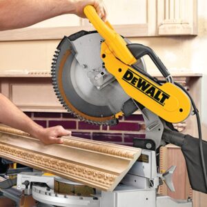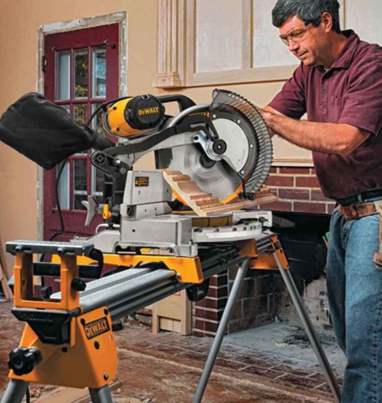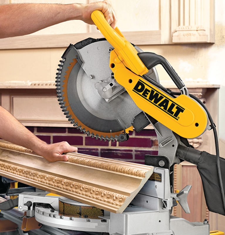 The DW716 12 in double-bevel compound miter saw has a 15 A motor for extended power and durability. Features stainless steel miter detent plate and cam miter lock that provide repeatable accuracy and durability with easy adjustments. Tall sliding fences support 6-5/8 in of nested crown and 6-1/2 in of base molding verticaly. Lightweight design, head lock-down pin and built-in carry handle for portability.Item Specifications