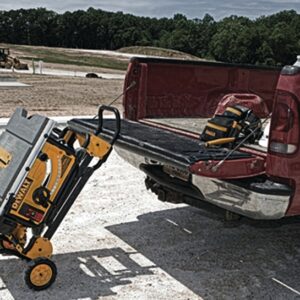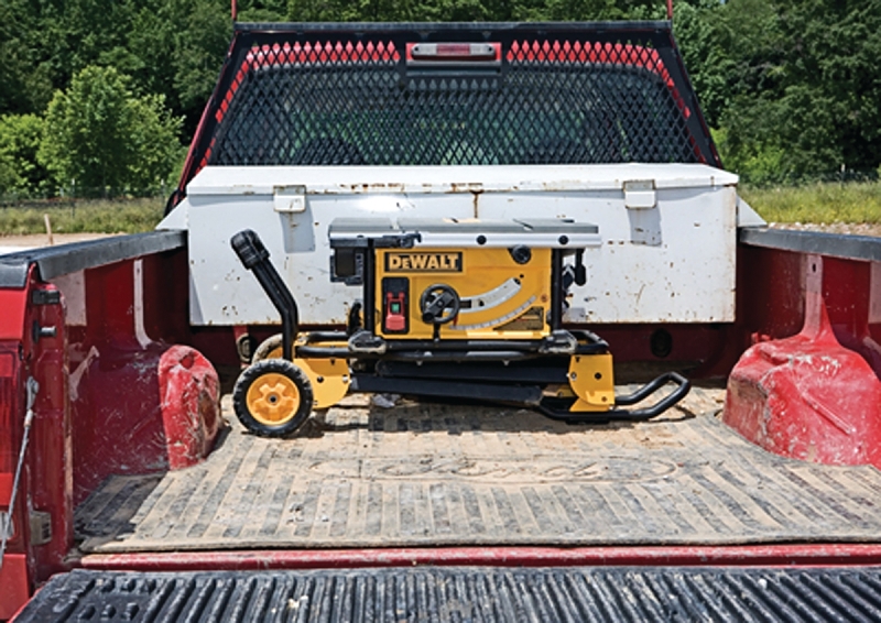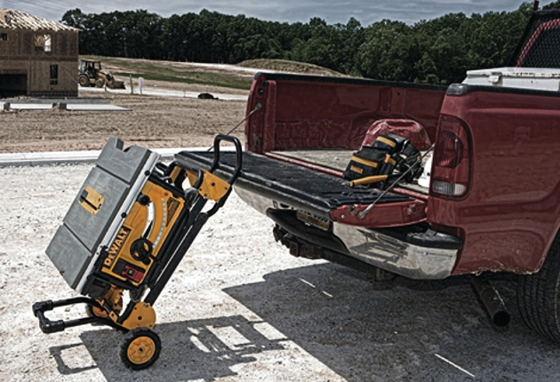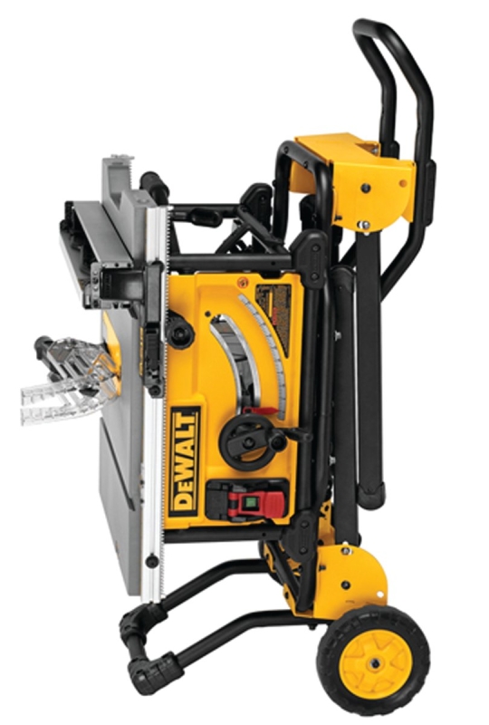 The DWE7491RS 10 in jobsite table saw 32-1/2 in rip capacity and a rolling stand has a 15 A motor and 32-1/2 in rip capacity to allow cutting of large and hardwood materials. Features tool-free guarding component adjustments and fast, accurate fence adjustments. Rolling stand designed for easy set up and breakdown with excellent stability.Item Specifications