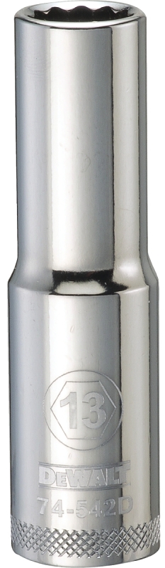 Home > Hand Tools > Mechanics Tools > Hand Mechanics > Sockets 1 2 Dr Metric > DEWALT DWMT74542OSP Drive Socket, 13 mm Socket, Deep Socket, 3-1/8 in OAL, 1/2 in Drive, 12-Point, Vanadium Steel