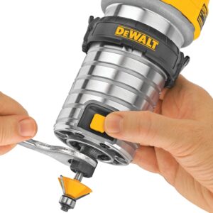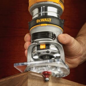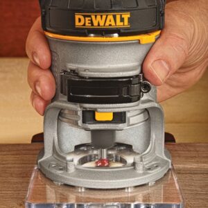 The DWP611 1-1/4 hp Max torque variable speed compact router with LED's has a 1-1/4 hp motor to deliver power for the toughest applications and variable speed control for optimal bit speed in each application. Allows quick and easy bit and base changes. LED light and clear plastic fixed base provide great bit visibility.Item Specifications