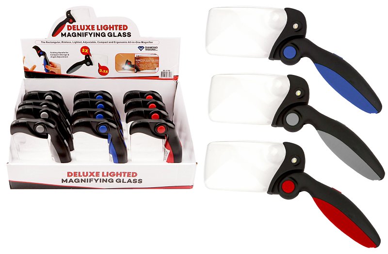 Diamond Visions Lighted Magnifying Glass, Mirror Shape: Rectangular, Magnification: 2.5X, 5X, Assorted, Foldable, Rotating Handle, Includes: Batteries