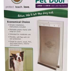 Economical choice. Simple installation with included instructions. Paintable plastic frame with snap-on cover. Intended for moderate use. Flexible, soft flap with UV sun protection. Great for storm, wood, PVC and metal doors; interior and exterior. Fits panel doors up to 2" thick, wood, storm, PVC and metal doors 1/16" to 2" thick and interior walls.