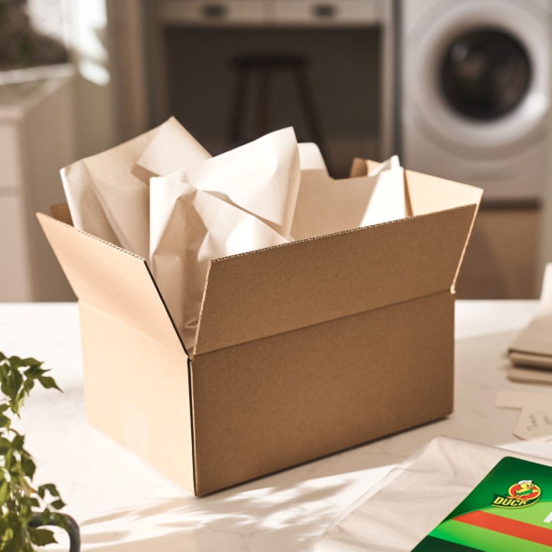 Whether your belongings are on the move, in the mail or headed for storage, Duck® brand corrugate boxes are ideal to have on hand for whatever project might come up. These sturdy and cost-effective boxes are ideal for storing or shipping books, catalogs and even larger items. Every box is also made up entirely of recycled content so you can go green wherever you go. Plus, the foldable format makes it possible to store your boxes and take up less space when you're not using them.