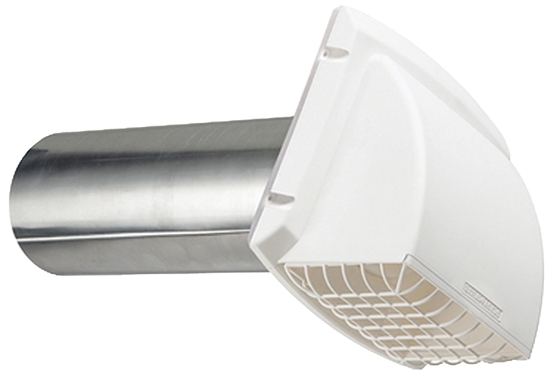 Dundas Jafine ProMax exhaust hoods feature a robust, wide mouth cap for optimum airflow and snug fit backdraft damper that helps to prevent cold air, snow or rain from entering the home. The damper has been redesigned for great noise reduction. Additional features include a removable pest screen that helps to keep pests out and allows for easy cleaning of the duct as well as a snap-on pipe to cap assembly that eliminates the need for lint trapping staples. All ProMax products have a UV-resistant coating to prevent the cap from discoloring and are paintable to match the exterior of your home. These hoods can be used in conjunction with brick, concrete or siding and are ideal for bathroom fan venting, dryer venting and kitchen range hood venting. The molded caulk edge on the cap helps to maintain a clean caulking application.