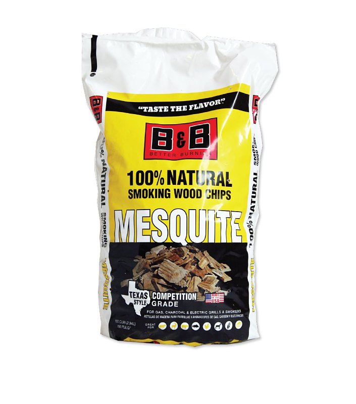 B & B Charcoal Smoking Chips, Net Content: 180 cu-in, Wood, Flavor: Mesquite