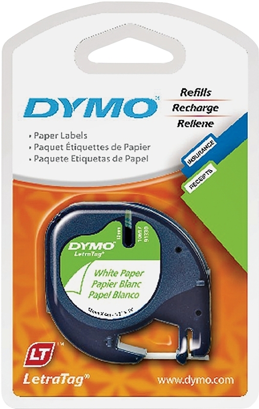 Home > Store and Office Supplies > Office and School Supplies > Office Supplies > Label Makers > Dymo LetraTag 10697 Paper Label, 13 ft L, 1/2 in W, Black/White Legend, White Background