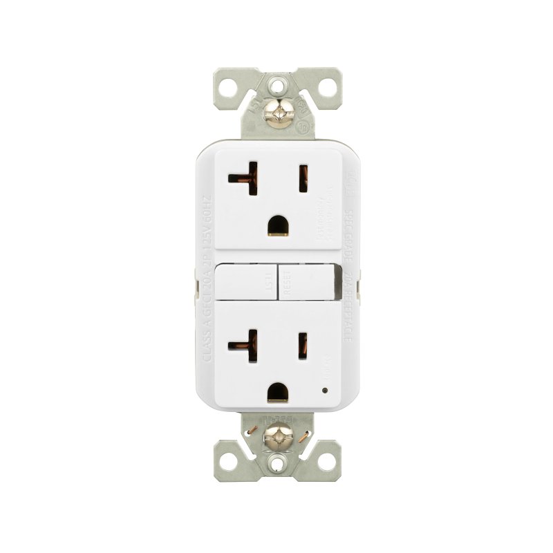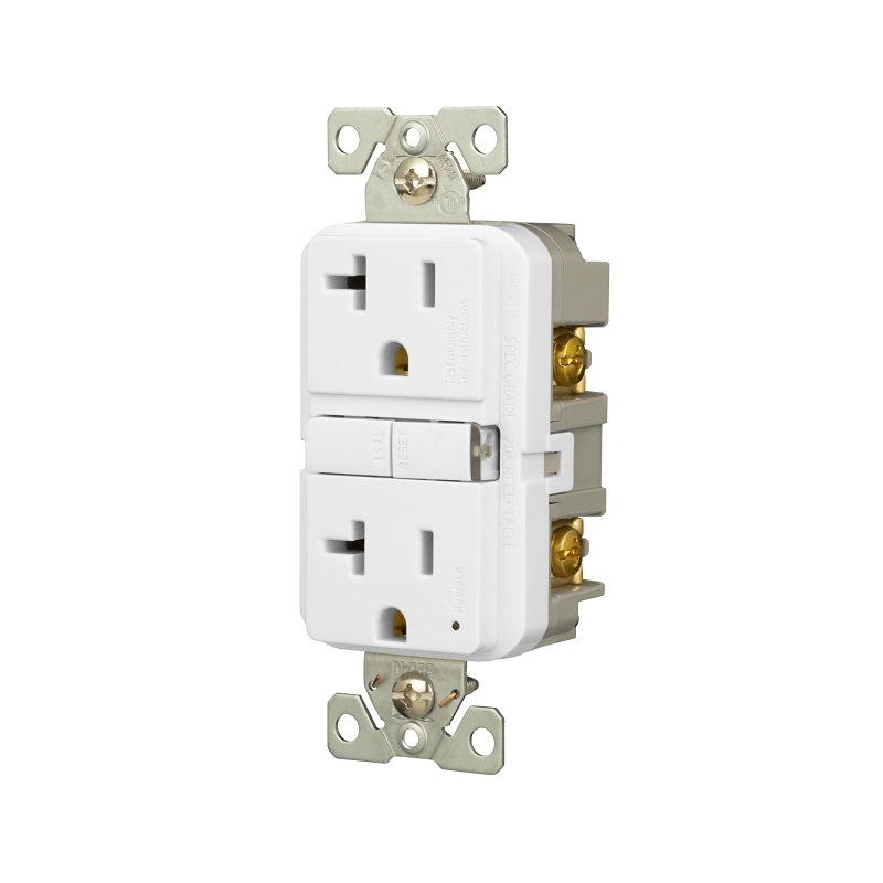 Eaton GFCI Receptacle, Self-Test, 125 V, 20 A, 2 Pole, 10 kA Short Circuit, Grounding Type: Automatic, 3 Wires, 14 to 10 AWG Wire, Back, Side Wiring, NEMA 5-20R NEMA Rating, -35 to 66 deg C Operating, Polycarbonate/Steel/Thermoplastic/PVC, White, Dimensions: 4.19 in H x 1.69 in WItem Specifications