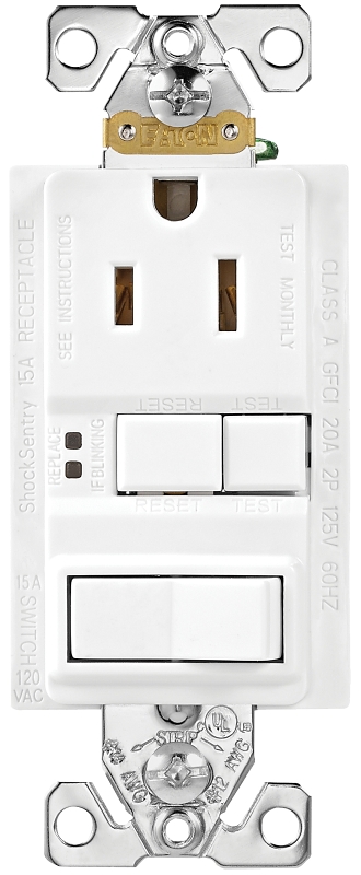 Eaton Receptacle, Duplex, Self-Test, 125 V, 15 A, Number of Poles: 2, NEMA Rating: NEMA 5-15R, White, Dimensions: 1.3 in L x 3.28 in W x 1.27 in HItem Specifications