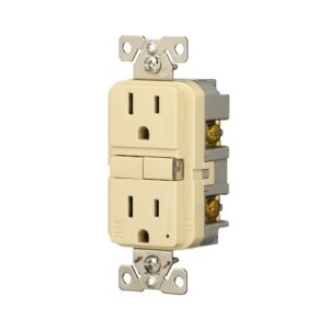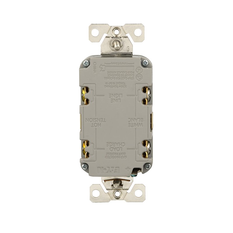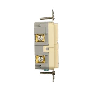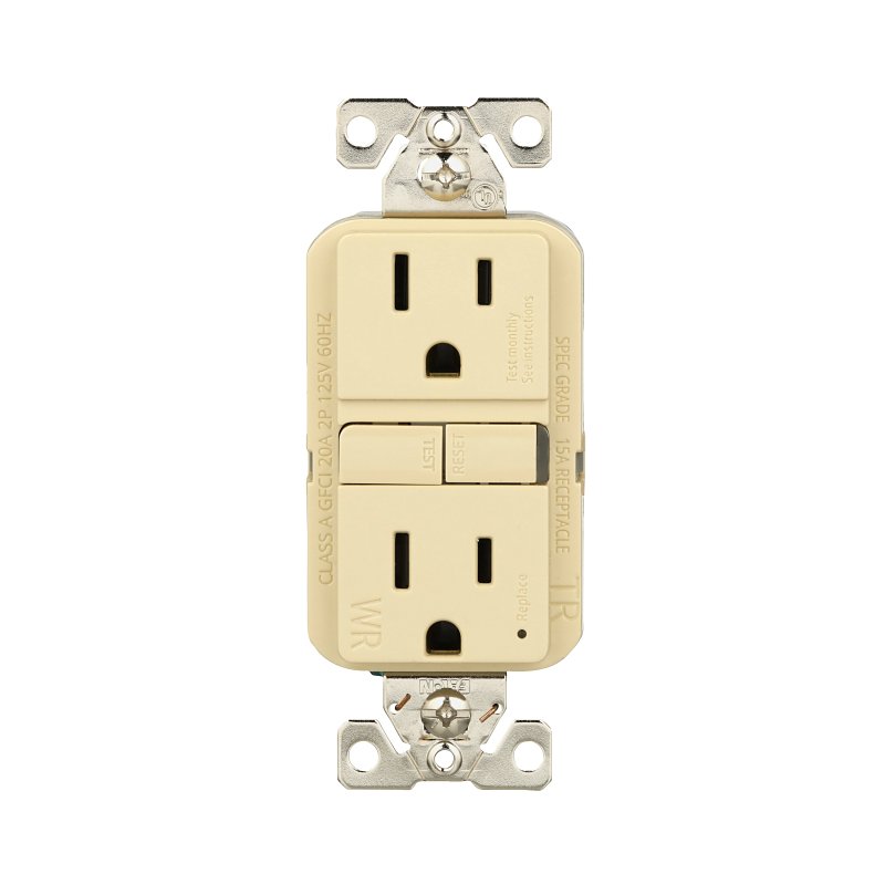 Eaton Tamper and Weather-Resistant GFCI Receptacle, Self-Test, 125 V, 15 A, 2 Pole, 10 kA Short Circuit, Grounding Type: Automatic, 3 Wires, 14 to 10 AWG Wire, Back, Side Wiring, NEMA 5-15R NEMA Rating, -35 to 66 deg C Operating, Polycarbonate/Steel/Thermoplastic/PVC, Ivory, Dimensions: 4.19 in H x 1.69 in WItem Specifications