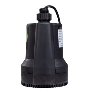 Eco-Flo Submersible Utility Pump, 1980 gph, 115 V, 1/4 hp, Suction Lift: 25 ft, Cord Size: 10 ft, Temperature Rating: 40 to 104 deg F, Thermoplastic, Dimensions: 6.4 in L x 6.4 in W x 10.2 in HItem Specifications